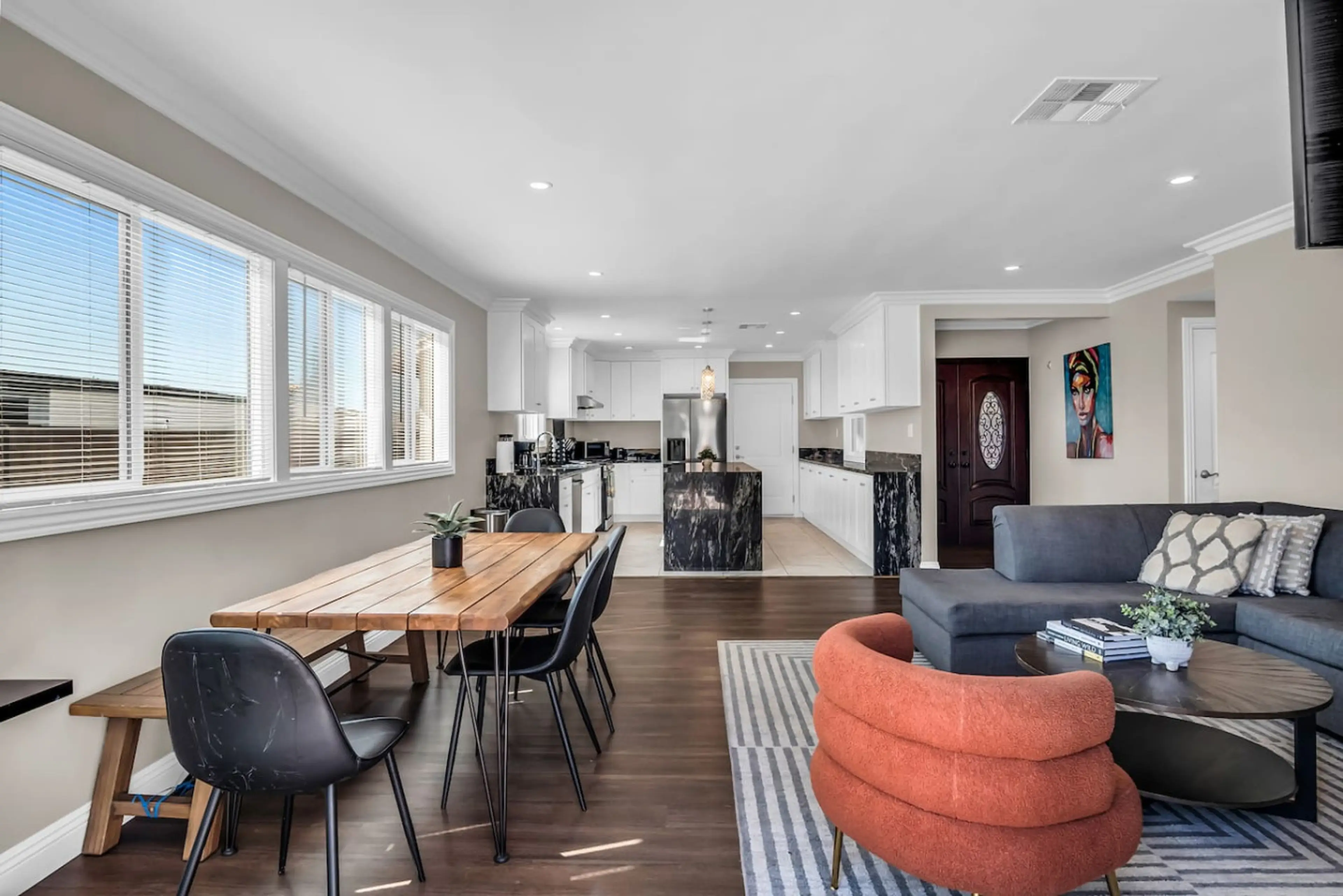 Welcome to your perfect Anaheim Getaway! This modern 4 bedroom, 2 bathroom home comfortably hosts families and groups, offering open living spaces, a fully equipped kitchen, and cozy bedrooms designed for relaxation. Just minutes from popular locations, ideal for unwinding after a day of adventure.