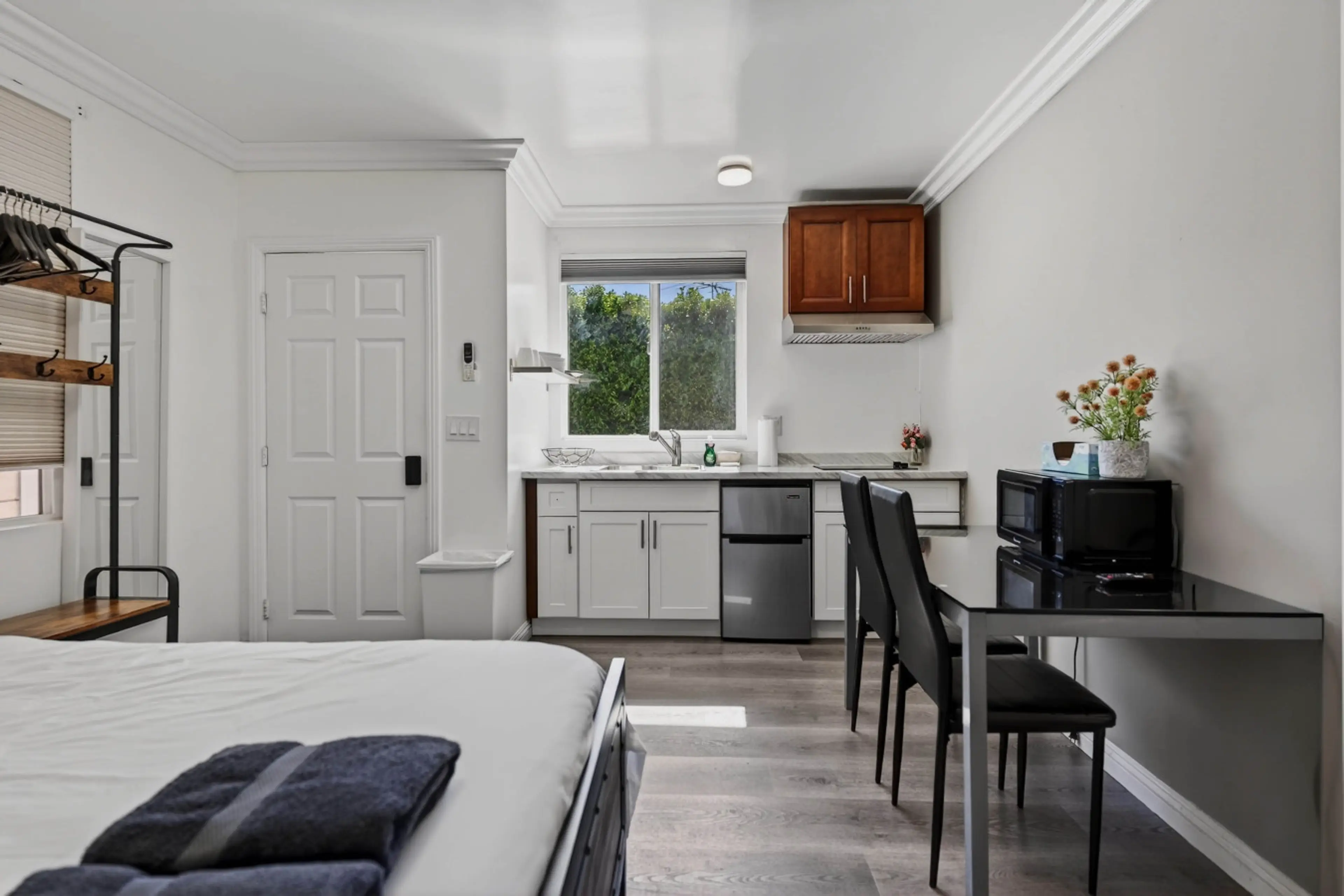 Welcome to your newly remodeled studio apartment in El Monte, CA—a sleek, modern-contemporary space designed for a relaxing, convenient stay in a highly central greater-LA location. With private parking and a private in-unit washer/dryer, this apartment is an easy fit for mid-term tenants, corporate...