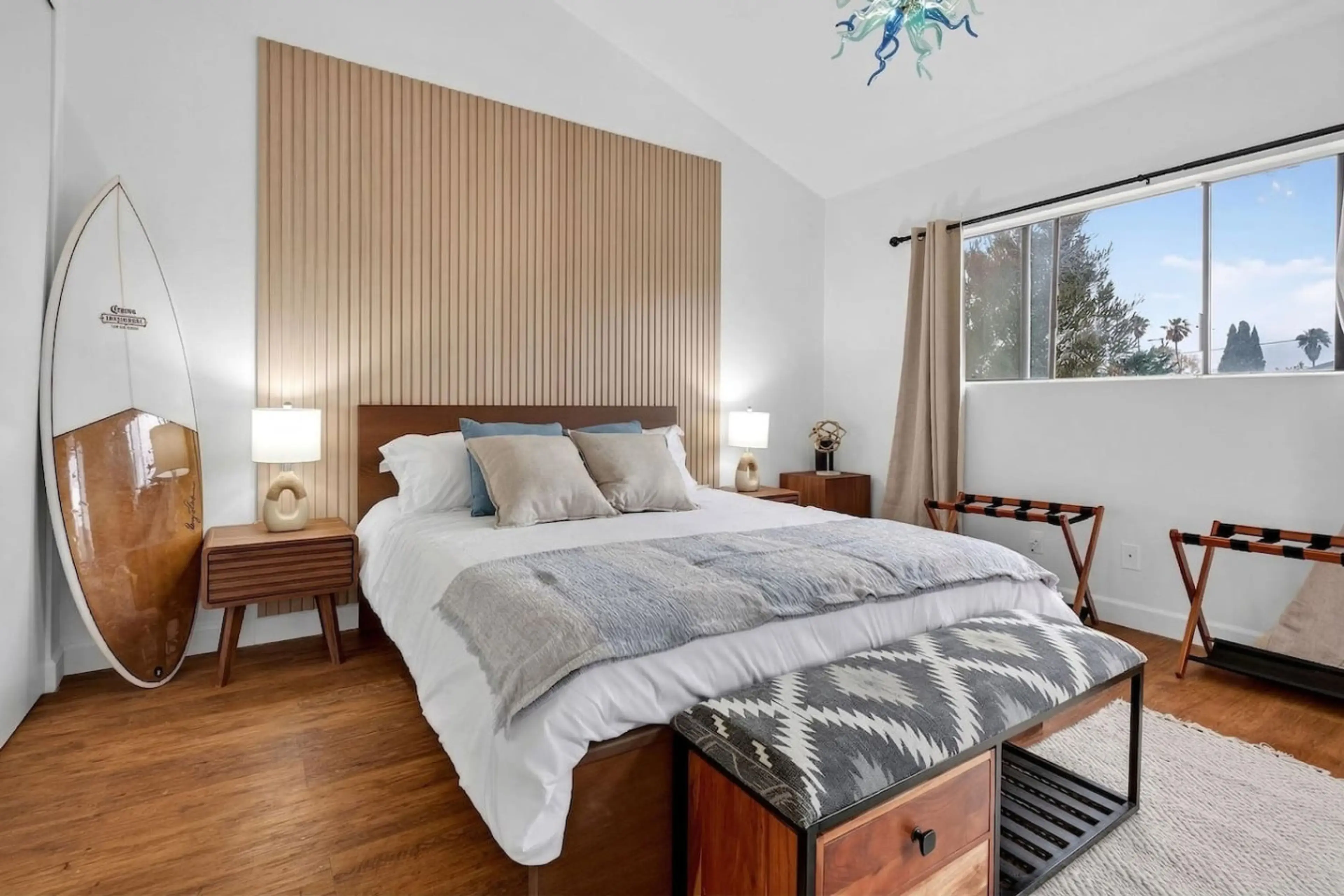 Welcome to your Long Beach stay — a stylish 1-bedroom, 1-bath apartment that blends contemporary modern design with relaxed coastal charm. Located about a mile from the beach, this space is ideal for business travelers, mid-term guests, and vacationers planning a week or two away. It offers a polish...